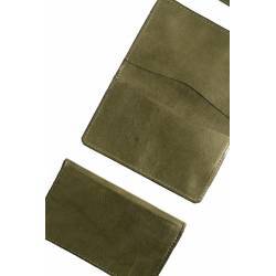 TARJETERO TRIPLE DE PIEL VERDE BOTELLA